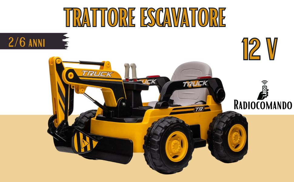 Trattore Escavatore Elettrico Braccio Meccanico Per Bambini 12V con Radiocomando